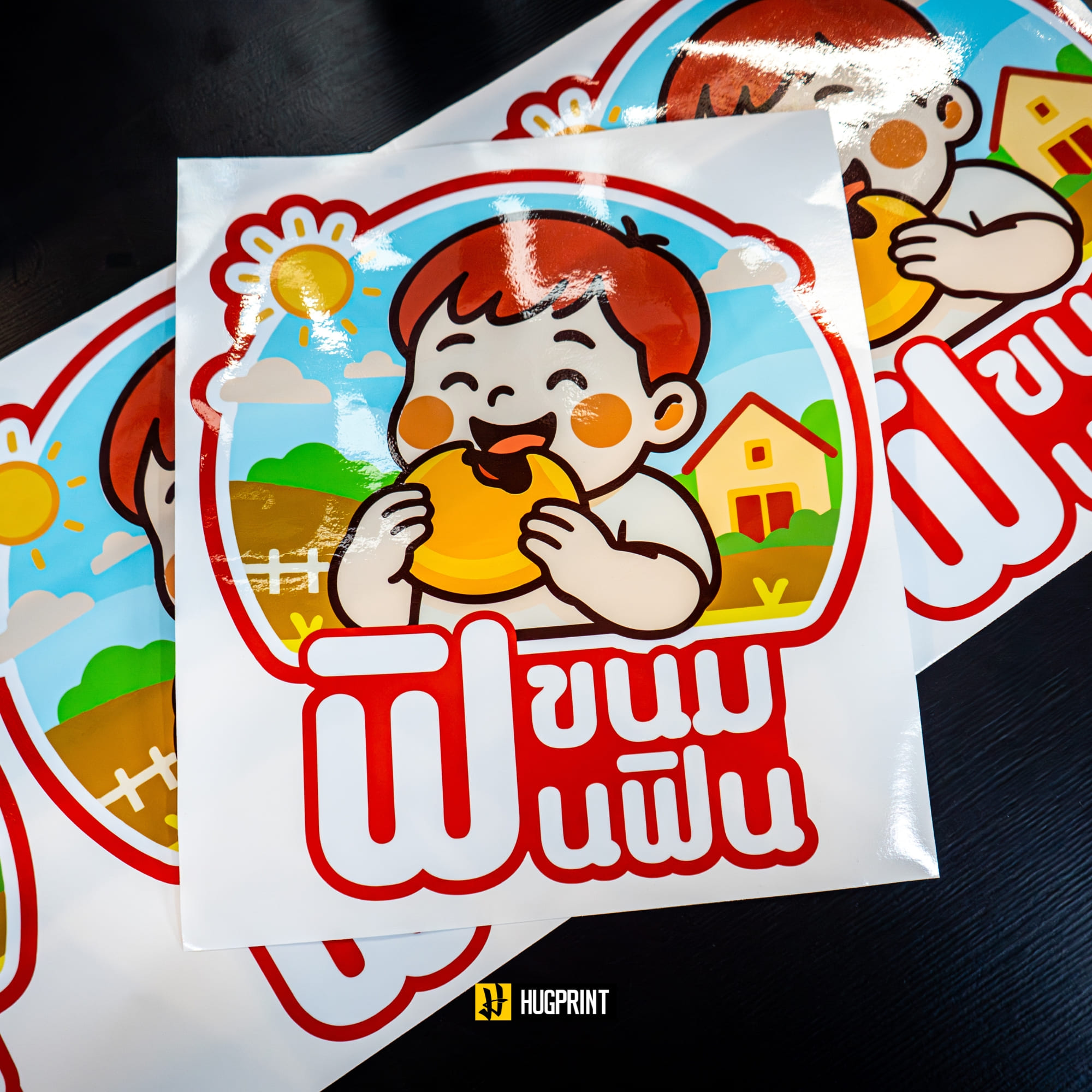 ฮักปริ้น (HUGPRINT) รับผลิตสติ๊กเกอร์โลโก้ครบวงจร – สติ๊กเกอร์คุณภาพสูง คมชัด ติดทน ลอกสติ๊กเกอร์ไม่มีคราบกาว