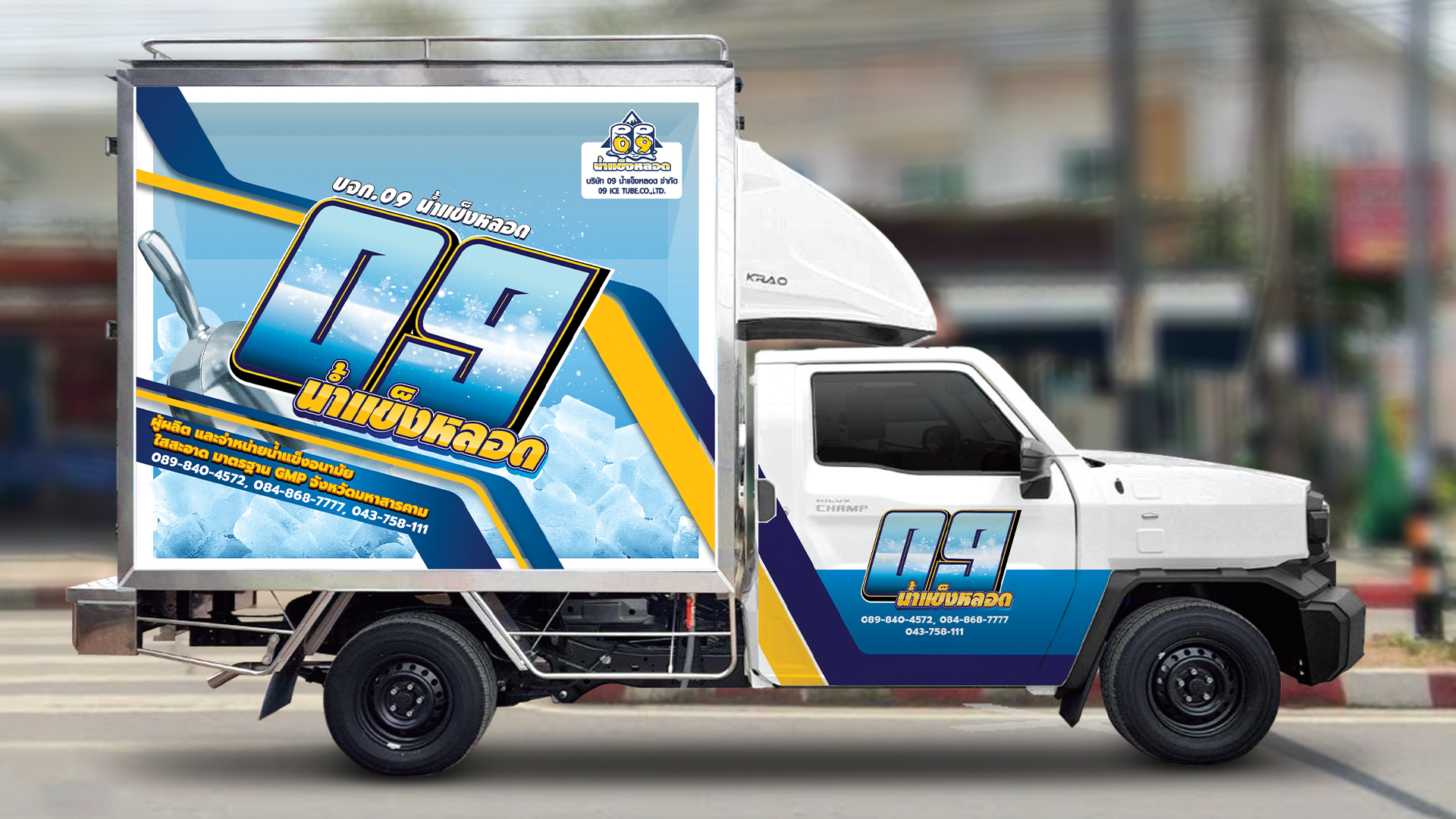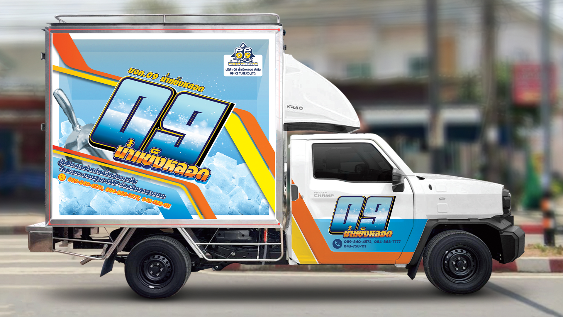ใช้สติ๊กเกอร์ติดรถเพื่อสื่อสารแบรนด์ ส่งเสริมการตลาด และแยกความต่างจากคู่แข่งธุรกิจขายส่งน้ำแข็งให้ร้านค้าและร้านอาหาร